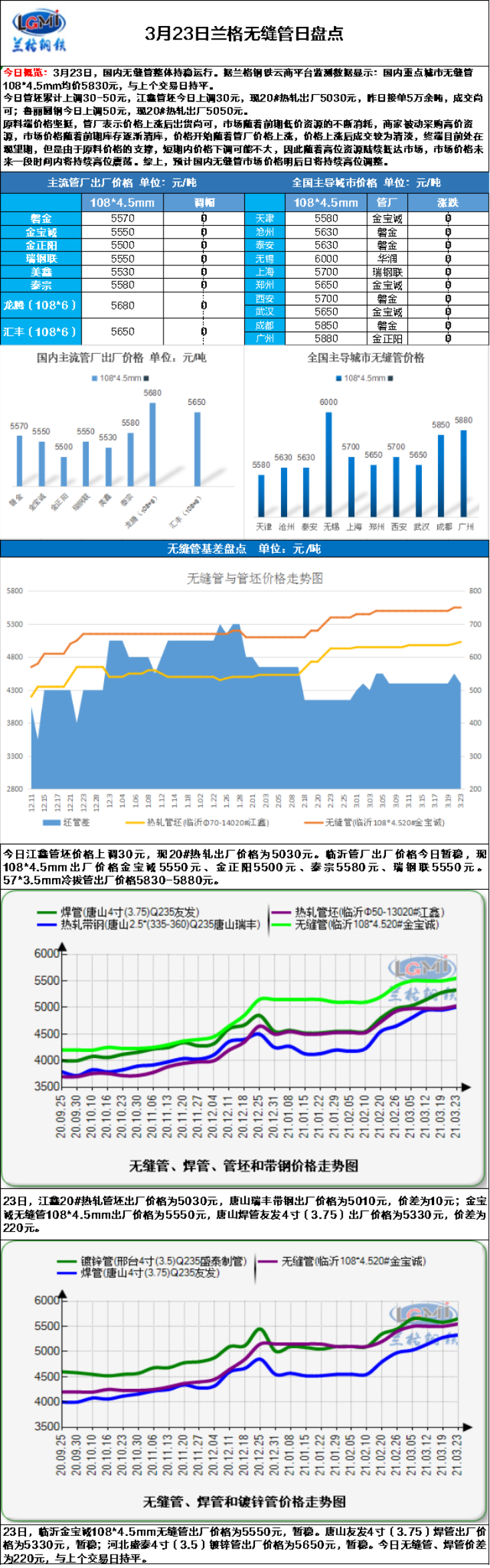 - 兰格无缝管日盘点(3.23):原料价格坚挺 管厂挺价意愿明显 市场高位成交偏弱2021/3/23