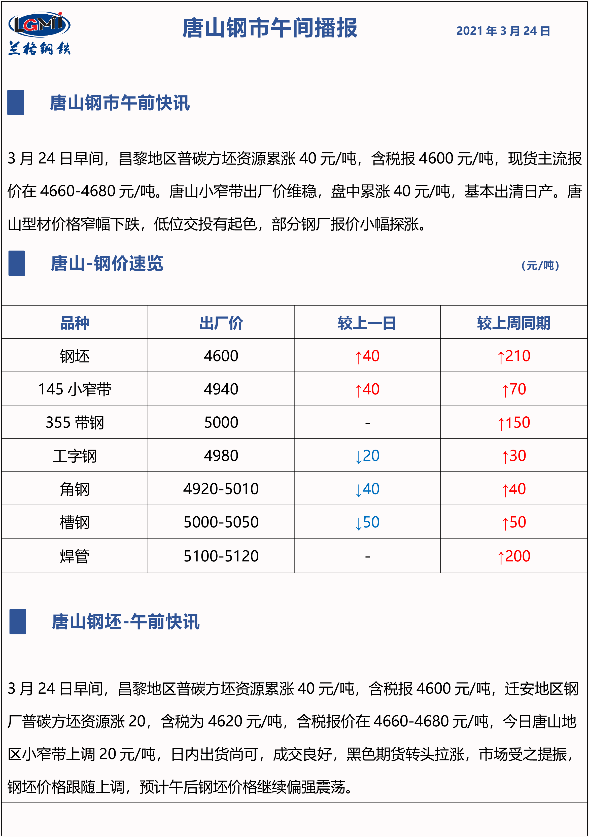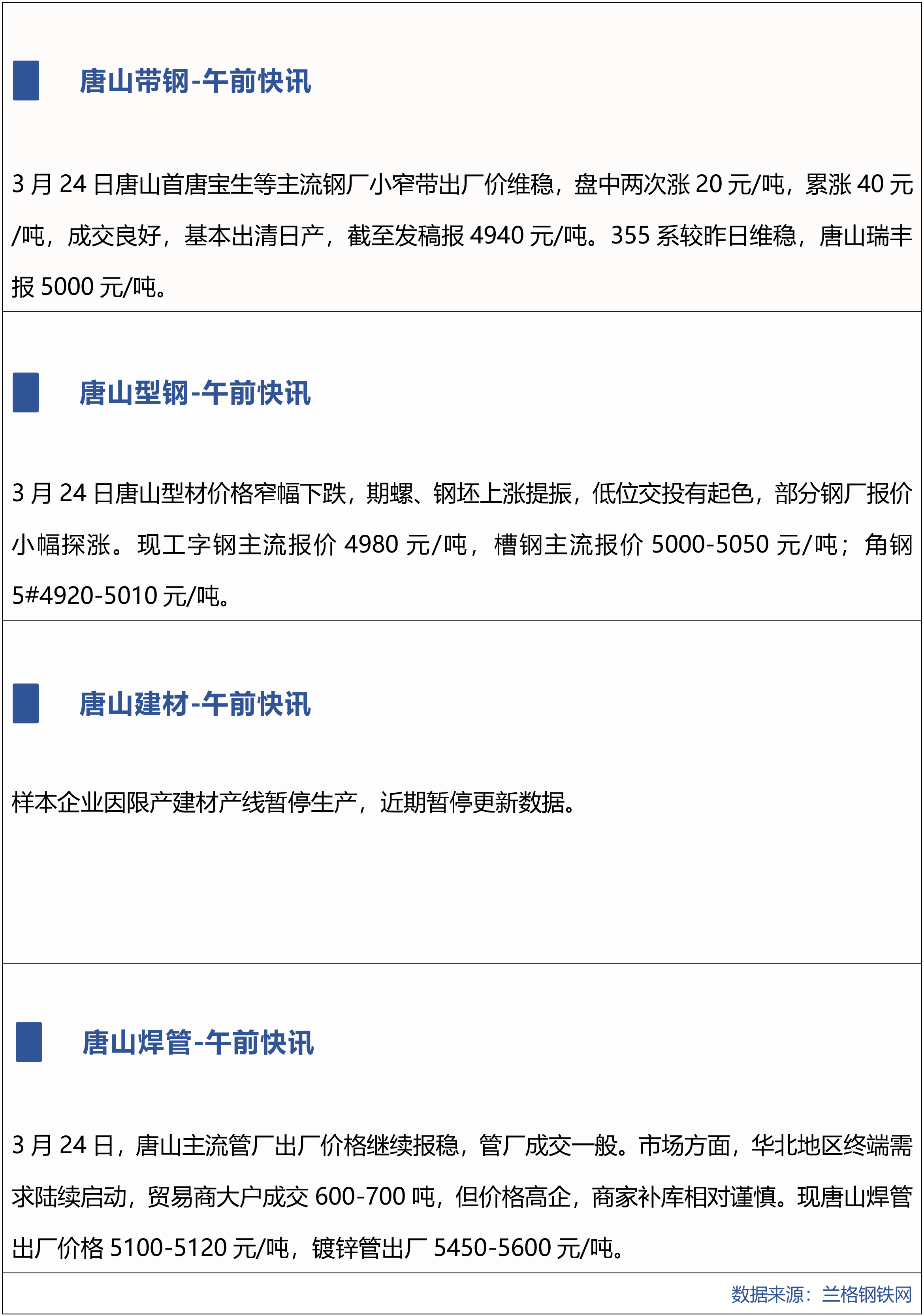 3月24日兰格唐山钢市午间播报