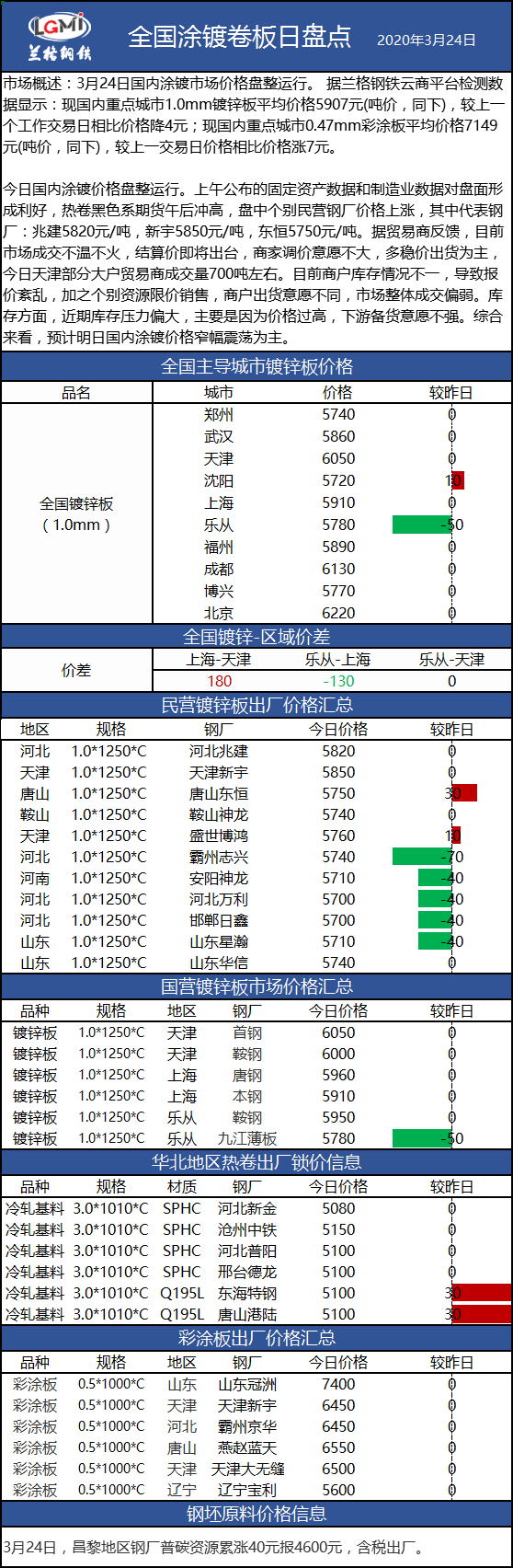 兰格涂镀板卷日盘点(3.24):涂镀价格盘整运行 下游对高价资源接受度低