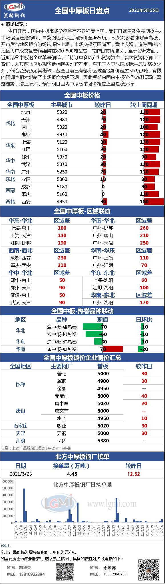 - 兰格中厚板日盘点(3.25):国内中板价格普遍上调 整体成交量有所好转2021/3/25