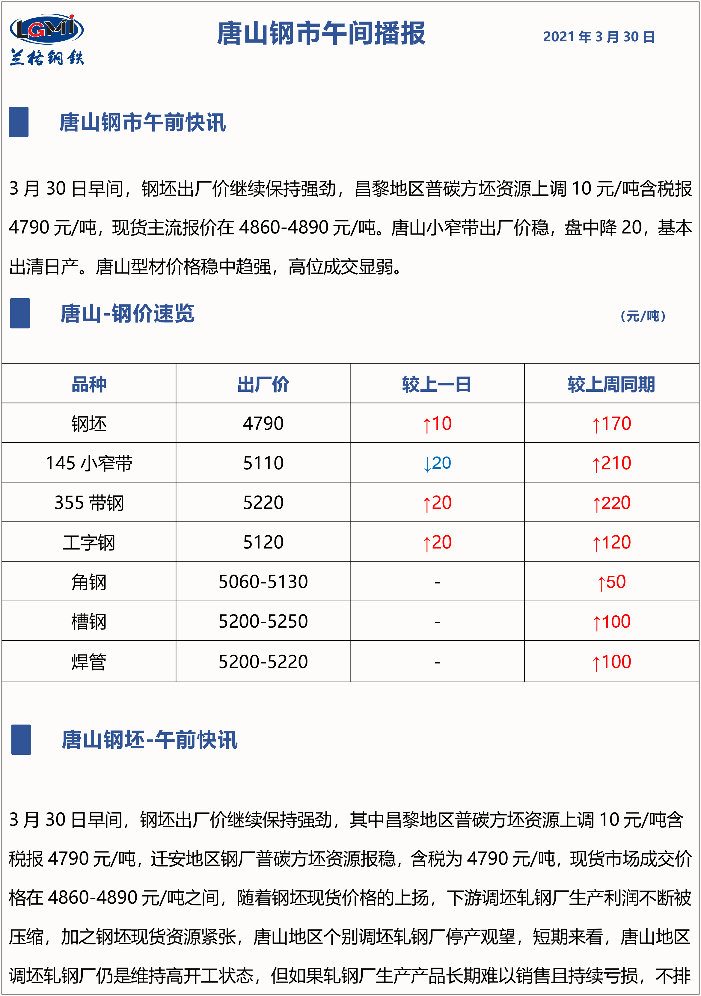 - 快讯:山西晋南钢铁建筑钢材出厂价格涨20-30元2021/3/30