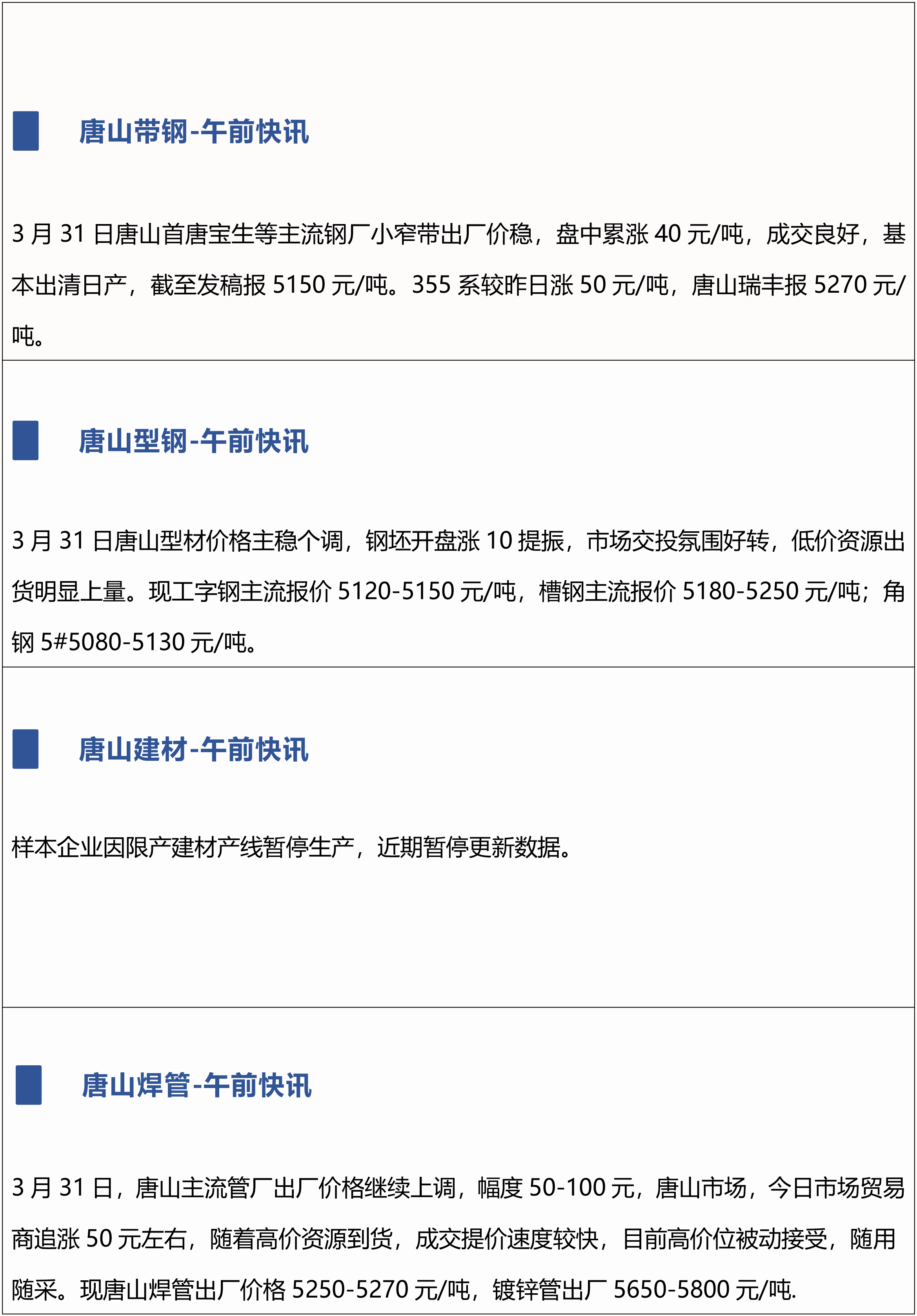- 3月31日凌源钢铁对京津建材出厂价格平稳2021/3/31