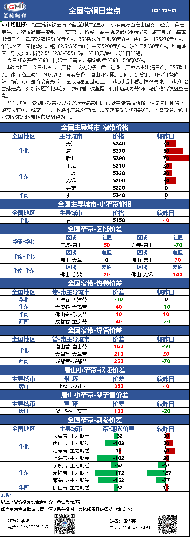 兰格带钢日盘点(3.31)钢坯涨 期货震 带钢再水涨船高