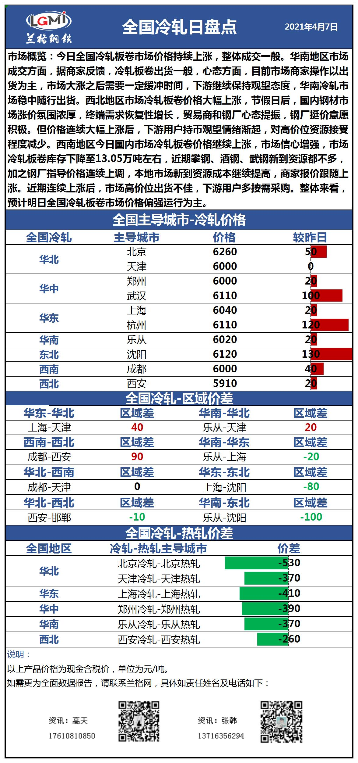 兰格冷轧板卷日盘点(4.7):价格持续上涨 市场成交平平