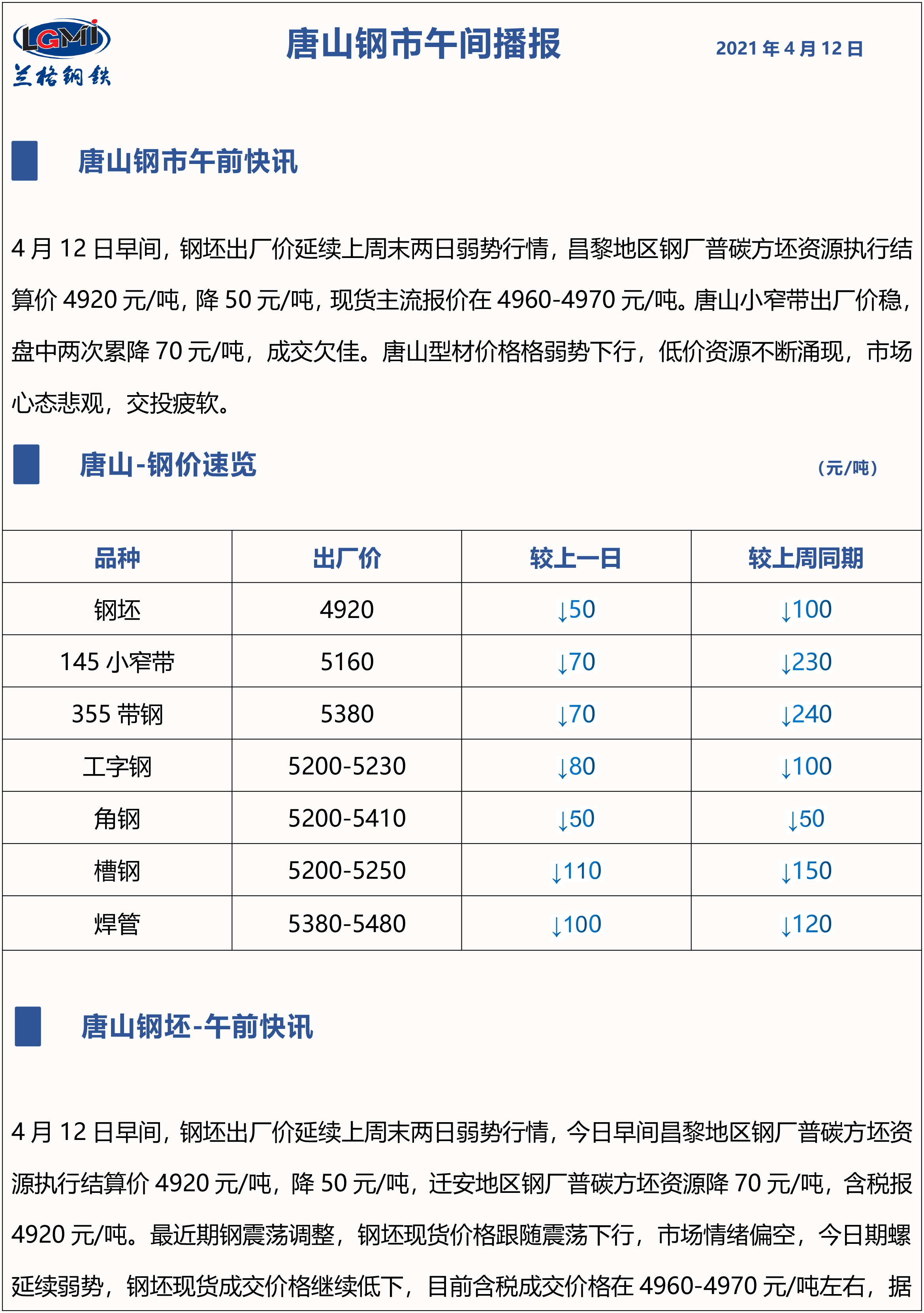 - 4月12日山西晋南钢铁建筑钢材出厂价格信息2021/4/12