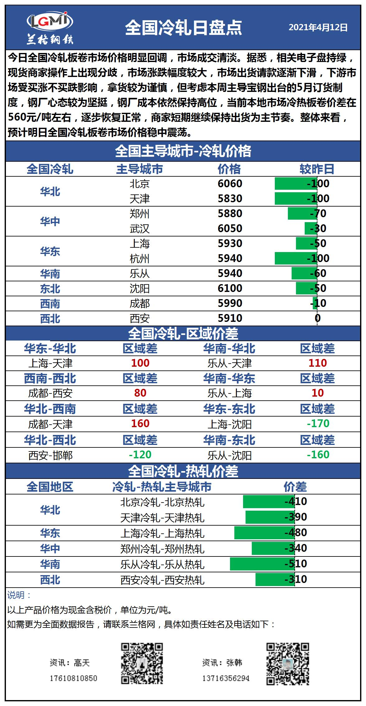 兰格冷轧板卷日盘点(4.12):价格明显回落 市场成交清淡