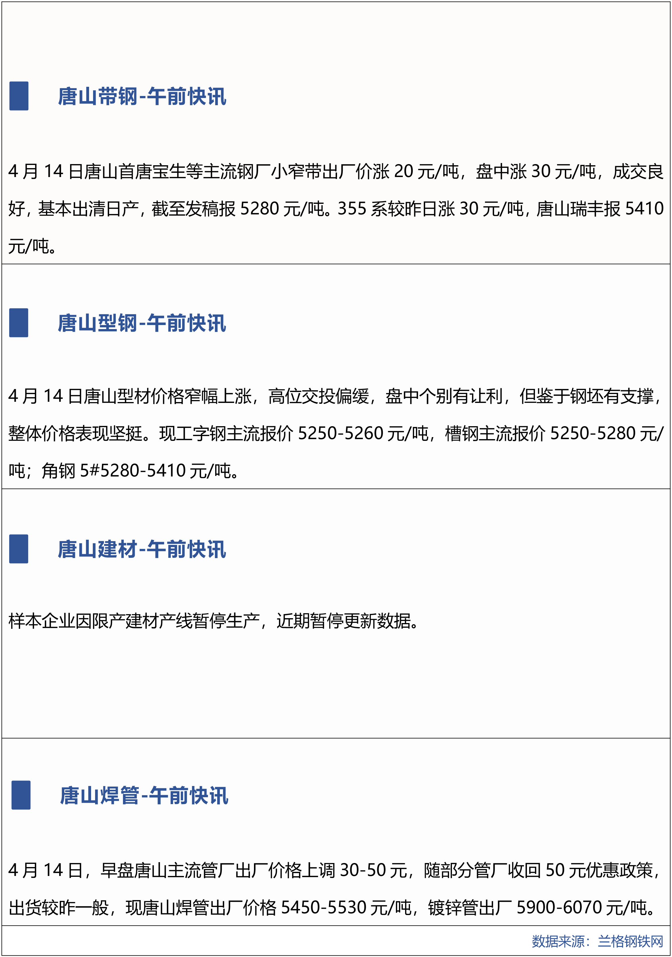 4月14日兰格唐山钢市午间播报
