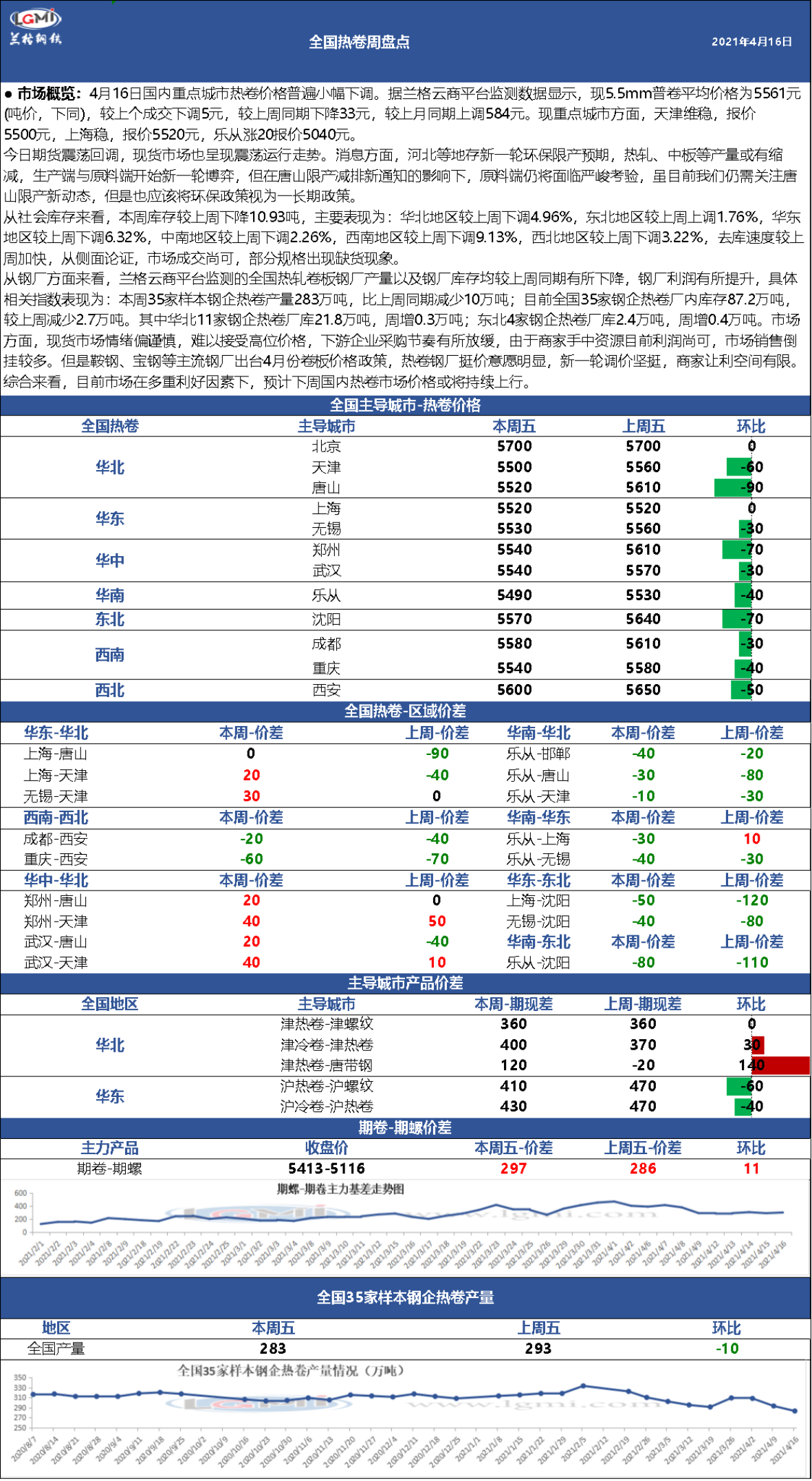 - 兰格钢铁价格指数(LGMI)第16周(21.4.12-4.16)2021/4/16