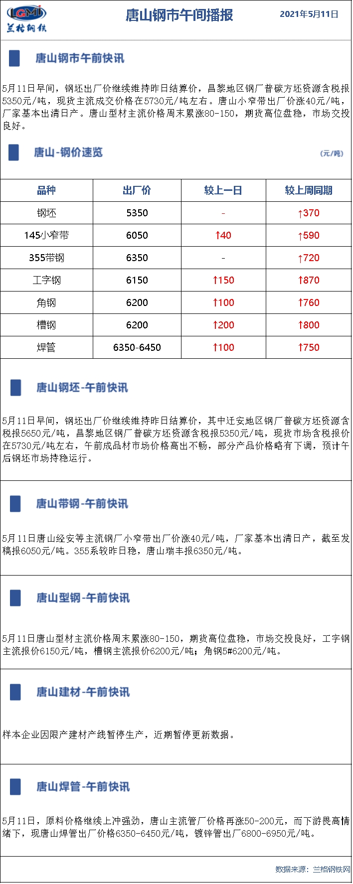 5月11日兰格唐山钢市午间播报
