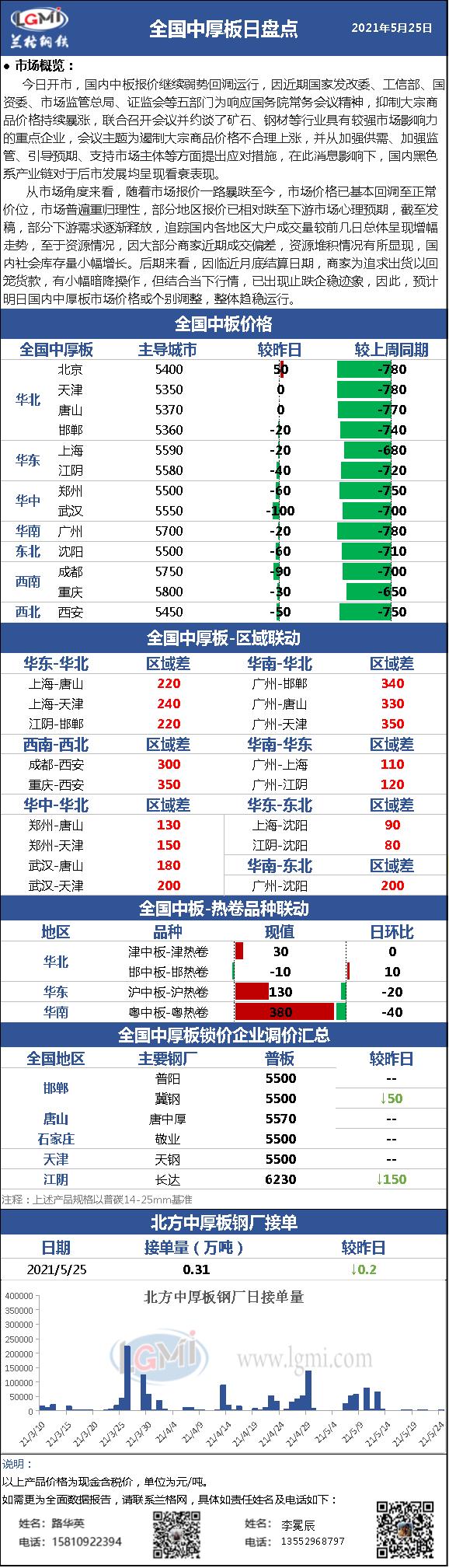- 兰格中厚板日盘点(5.25):市场报价弱势盘整 触底苗头渐显2021/5/25