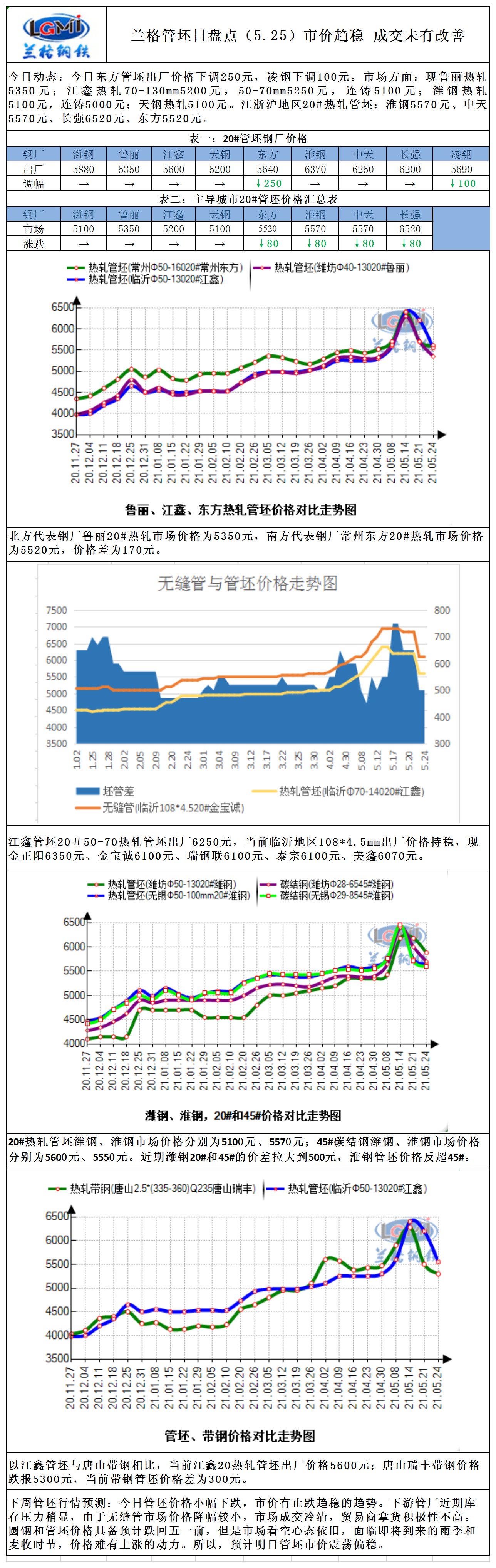 兰格管坯日盘点(5.25)市价趋稳 成交未有改善