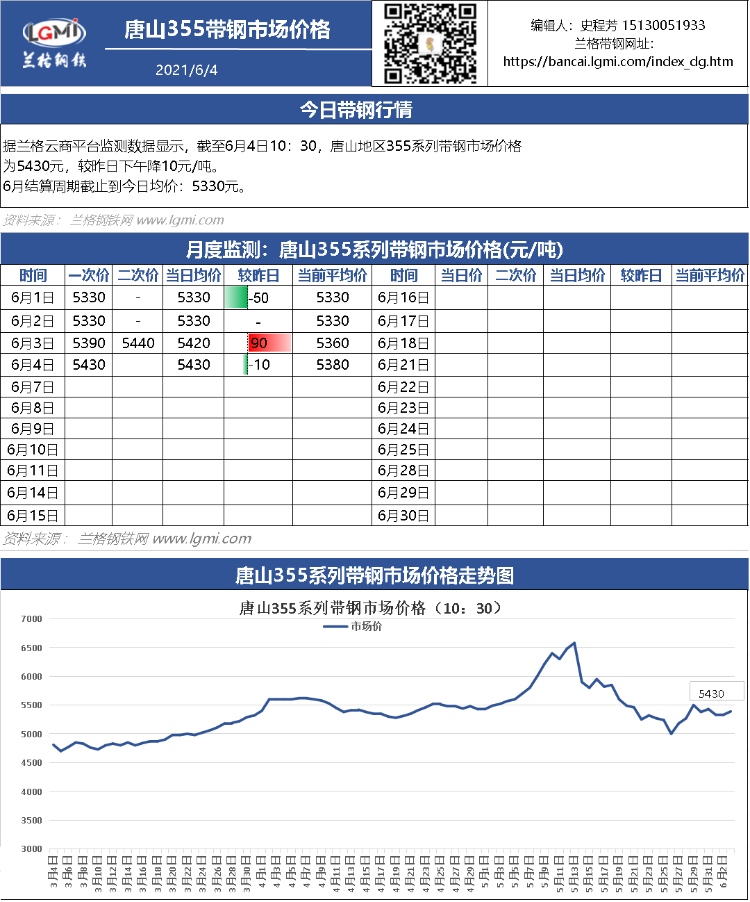 6月4日(10:30)唐山355系带钢市场价格