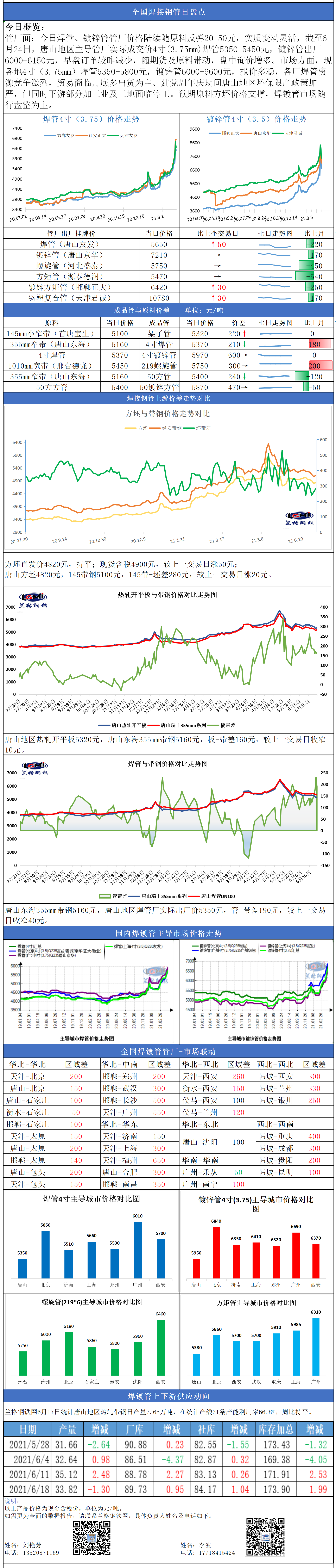 - 6月24日焊管、镀锌管主要管厂出厂挂牌价汇总2021/6/24