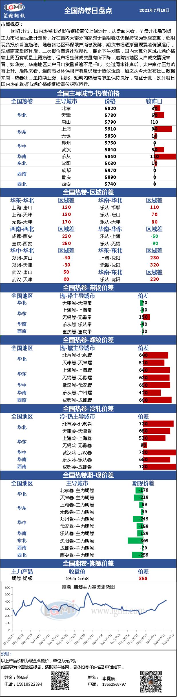 - 兰格热卷日盘点(7.19):价格高位上涨 需求跟进不足 预计明日小幅探涨2021/7/19