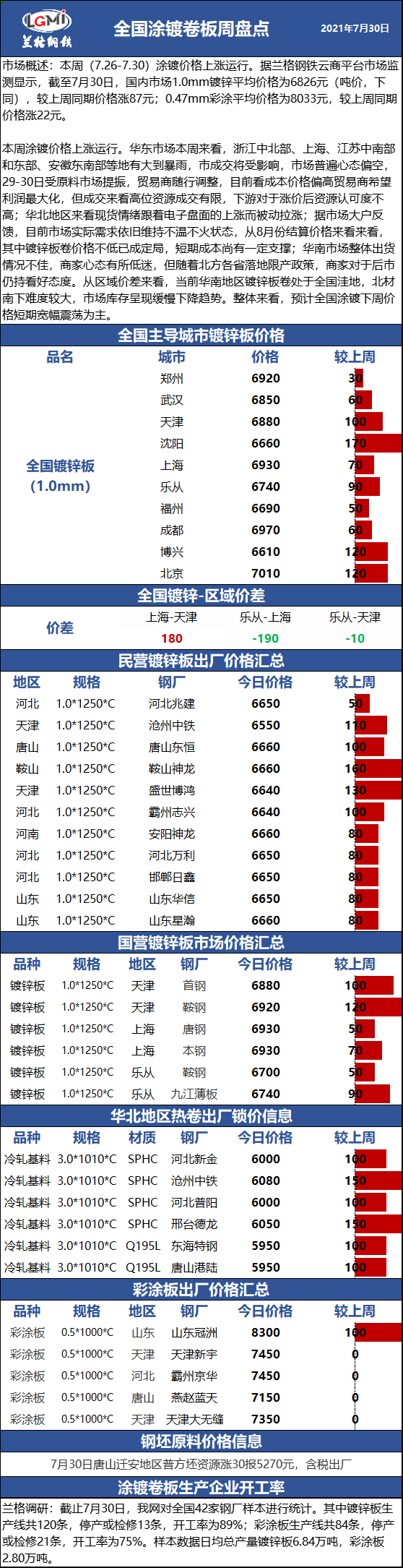 兰格涂镀板卷周盘点(7.30):涂镀价格上涨运行 下周维持震荡为主