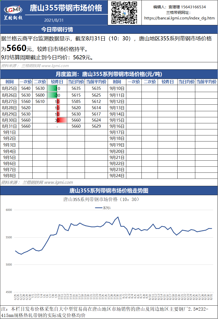 - 8月31日(10:30)唐山355系带钢市场价格2021/8/31