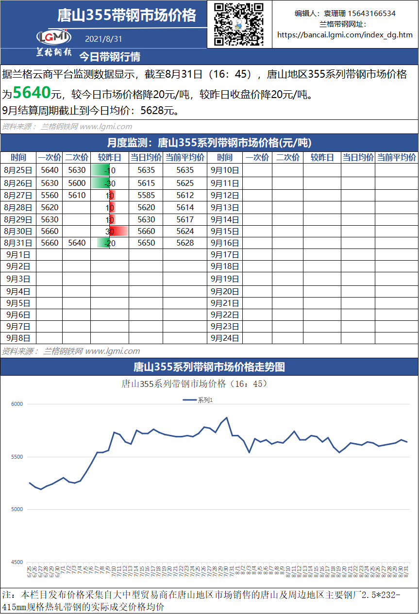 - 8月31日(16:45)唐山355系带钢市场价格2021/8/31