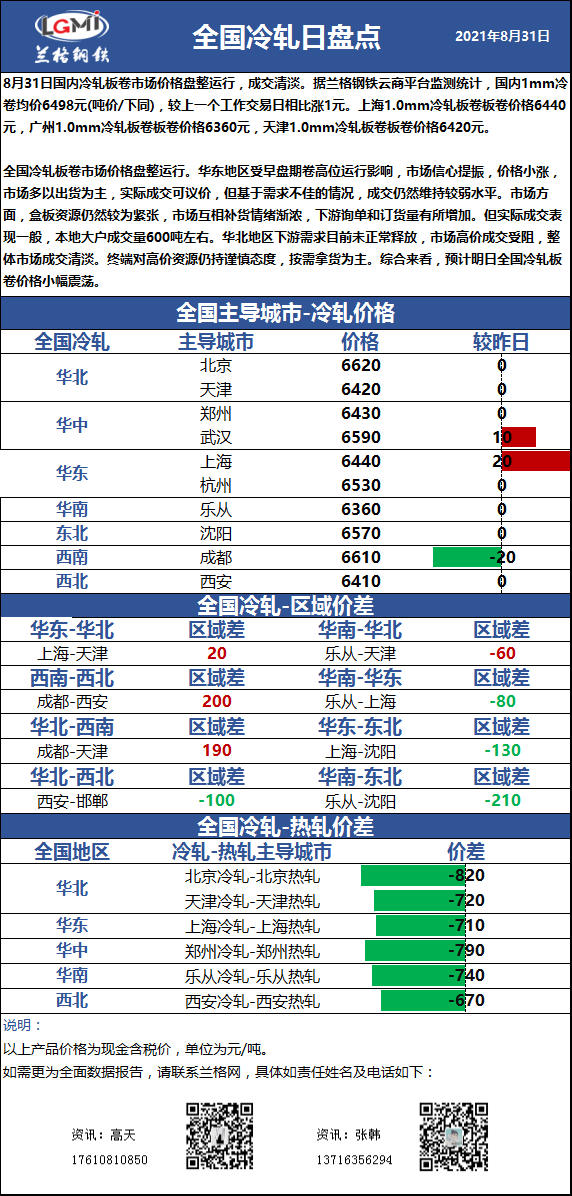 兰格冷轧板卷日盘点(8.31):冷轧价格盘整运行 市场成交一般