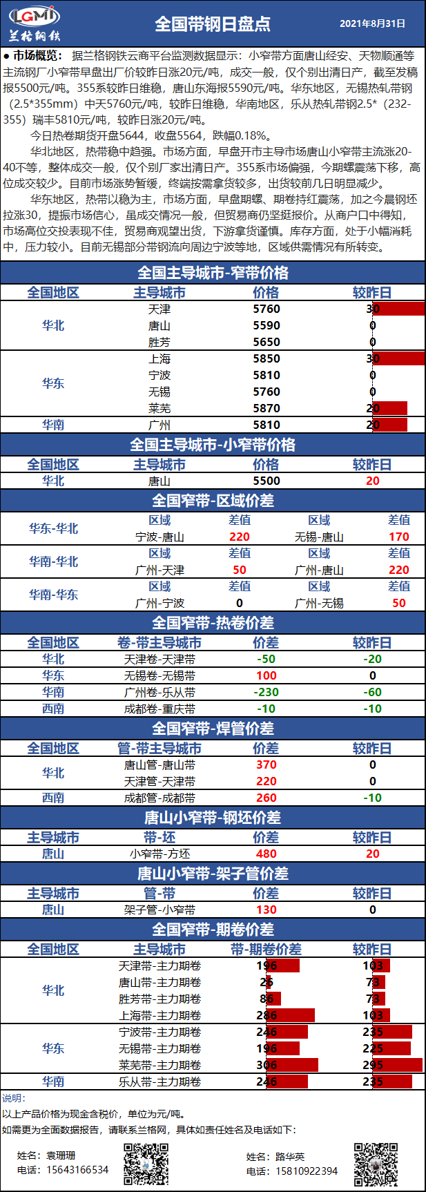 - 快讯:8月31日唐山德龙带钢出厂价维稳2021/8/31