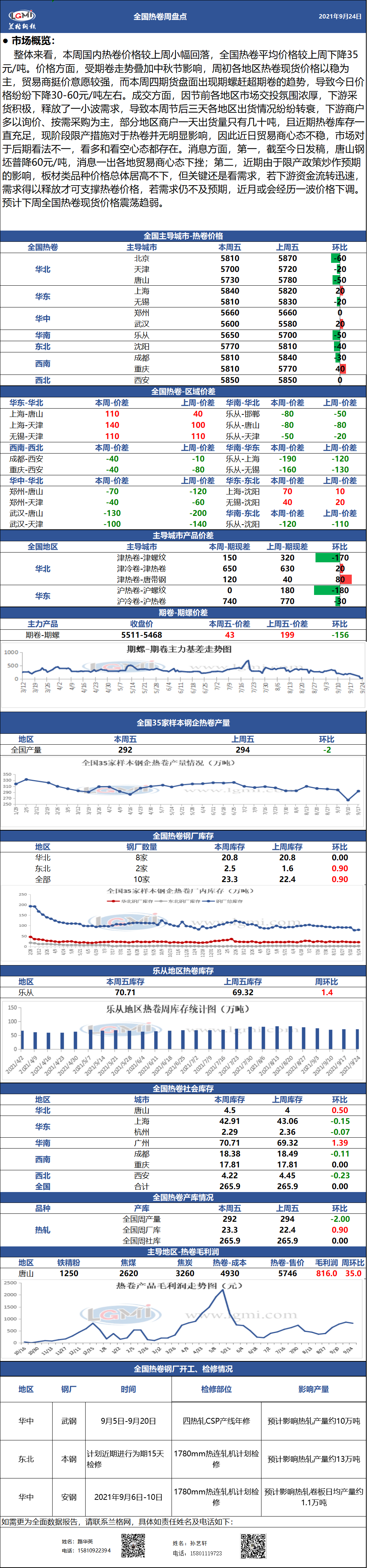 兰格热卷周盘点(9.24):本周全国热卷价格小幅回落 市场交投氛围冷清