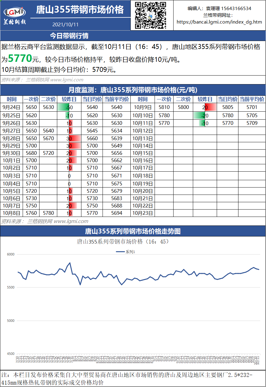 - 10月11日(16:45)唐山355系带钢市场价格2021/10/11