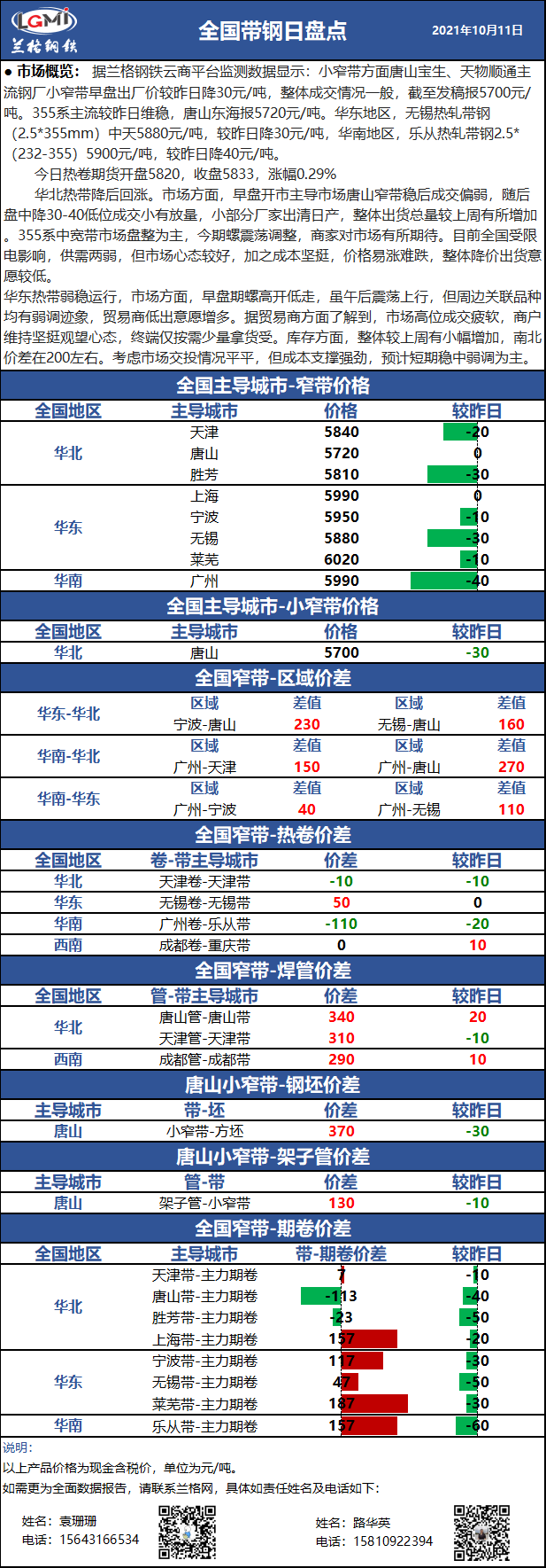 - 兰格带钢日盘点(10.11):带钢稳中下行 市场交投平平2021/10/11