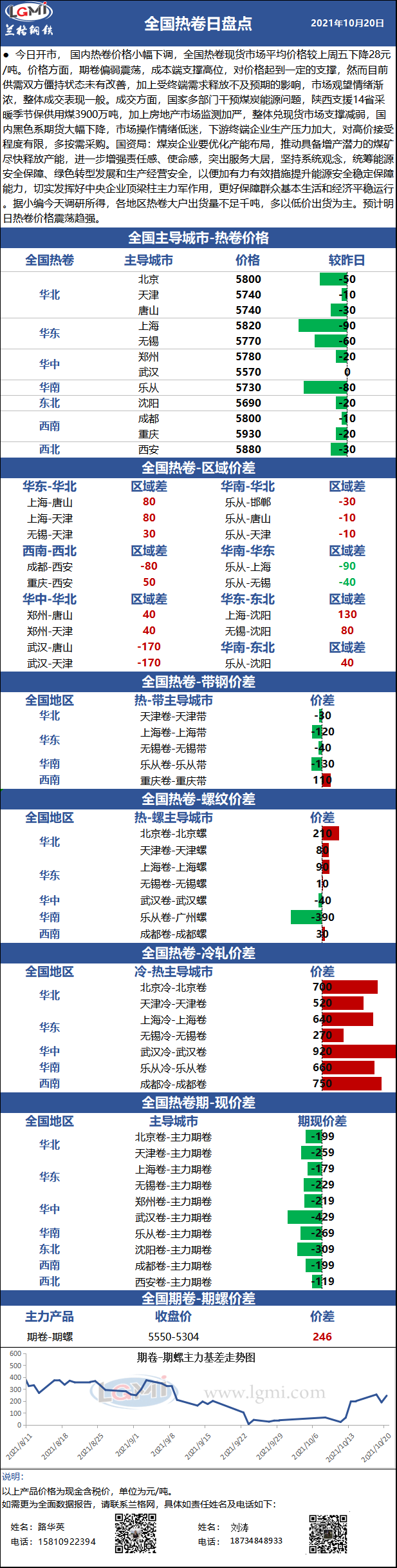 - 兰格热卷日盘点(10.20):今日全国热卷价格小幅下调 市场出货以低价出售为主2021/10/20
