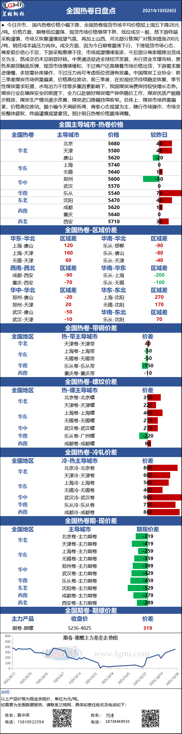 - 兰格热卷日盘点(10.26):今日全国热卷价格小幅下降 市场观望情绪渐浓2021/10/26