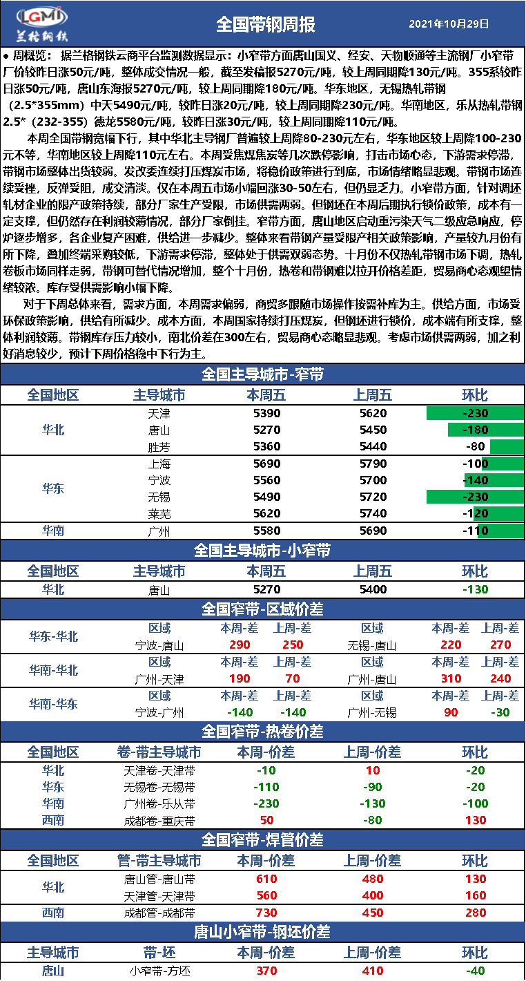 - 综述:本周带钢市场续降为主 产业链流转不畅2021/10/29