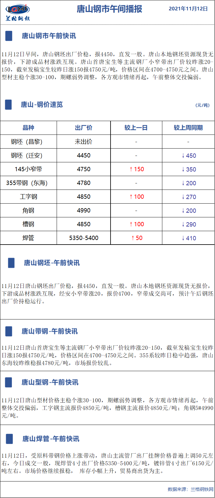 发表日期:2021/11/12 11:47:48 兰格钢铁