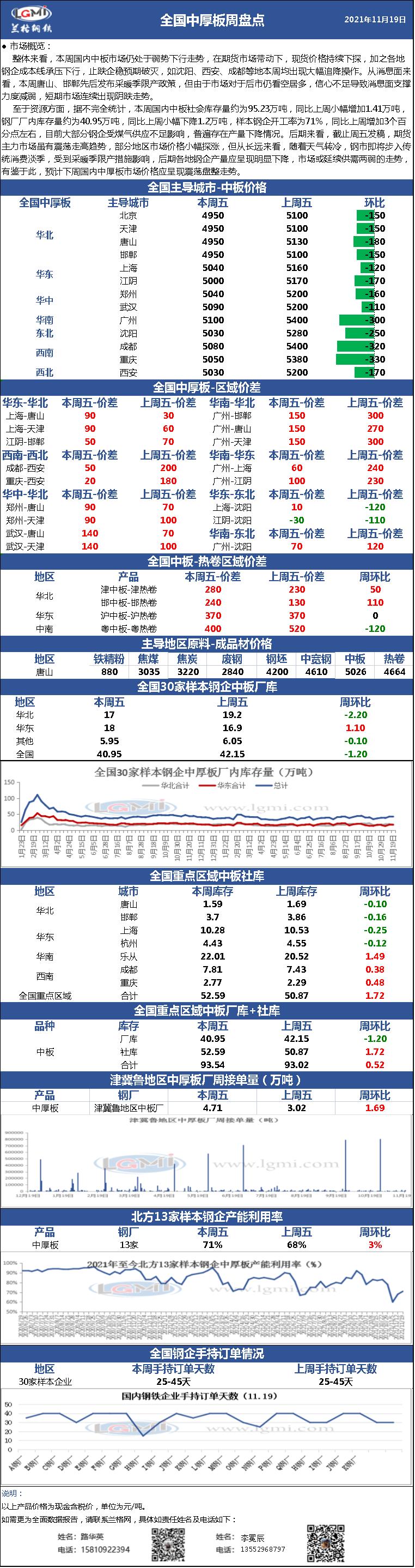 - 兰格调研:本周国内中厚板生产企业手持订单情况良好2021/11/19