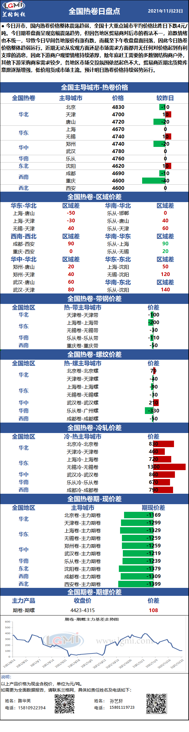 兰格热卷日盘点(11.23):今日国内热卷价格整体弱势盘整 市场贸易商多以出货降库为主