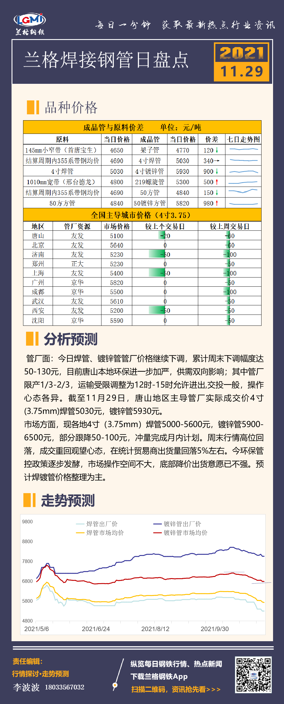 兰格焊接钢管日盘点(11.29):冬奥政策“大幕”拉开? 焊镀管市场观望行情方向