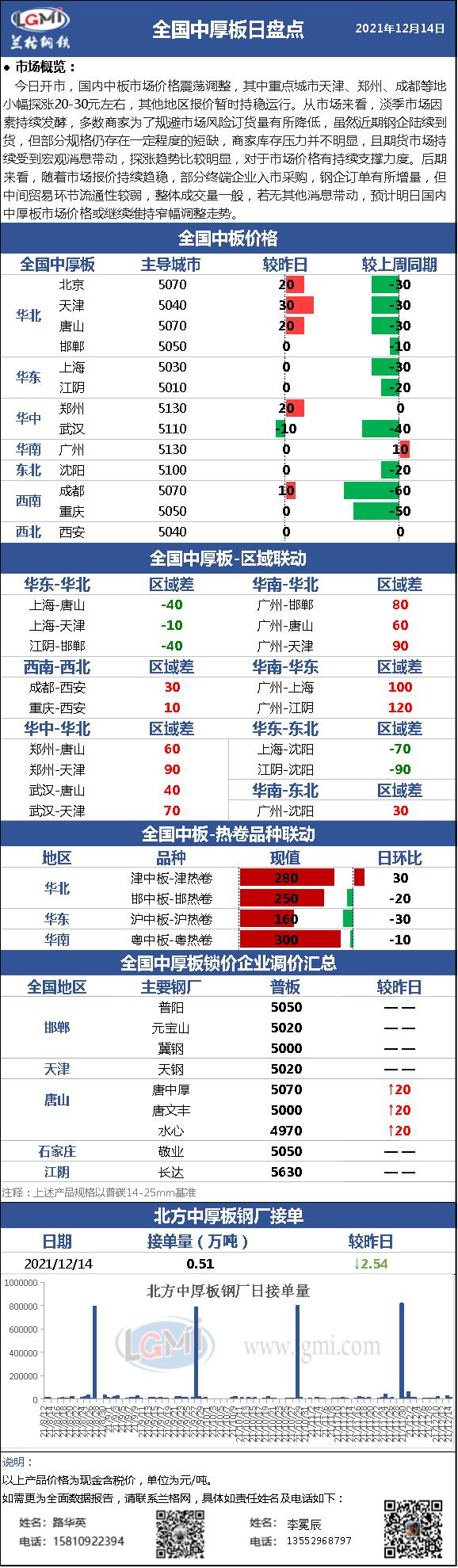 - 12月14日国内中厚板钢厂调价汇总2021/12/14