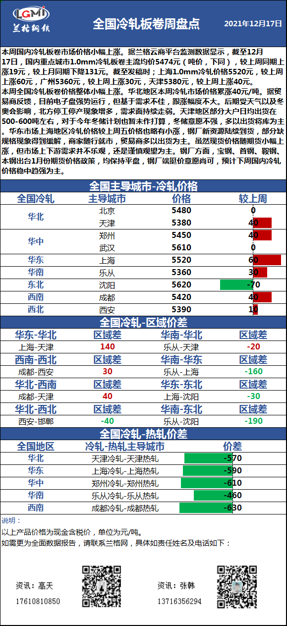 兰格冷轧板卷周盘点(12.17):冷轧价格小幅上涨 预计下周稳中趋强