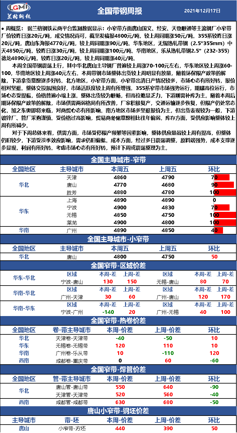 - 综述:本周带钢市场震荡上行 商贸心态有好转2021/12/17