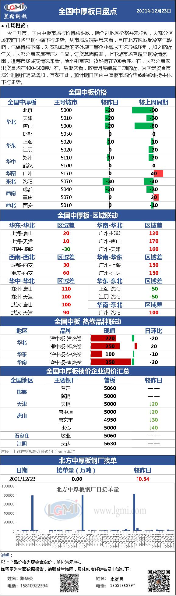 - 兰格中厚板日盘点(12.23):市场报价呈现阴跌 整体成交较昨日持续缩减2021/12/23