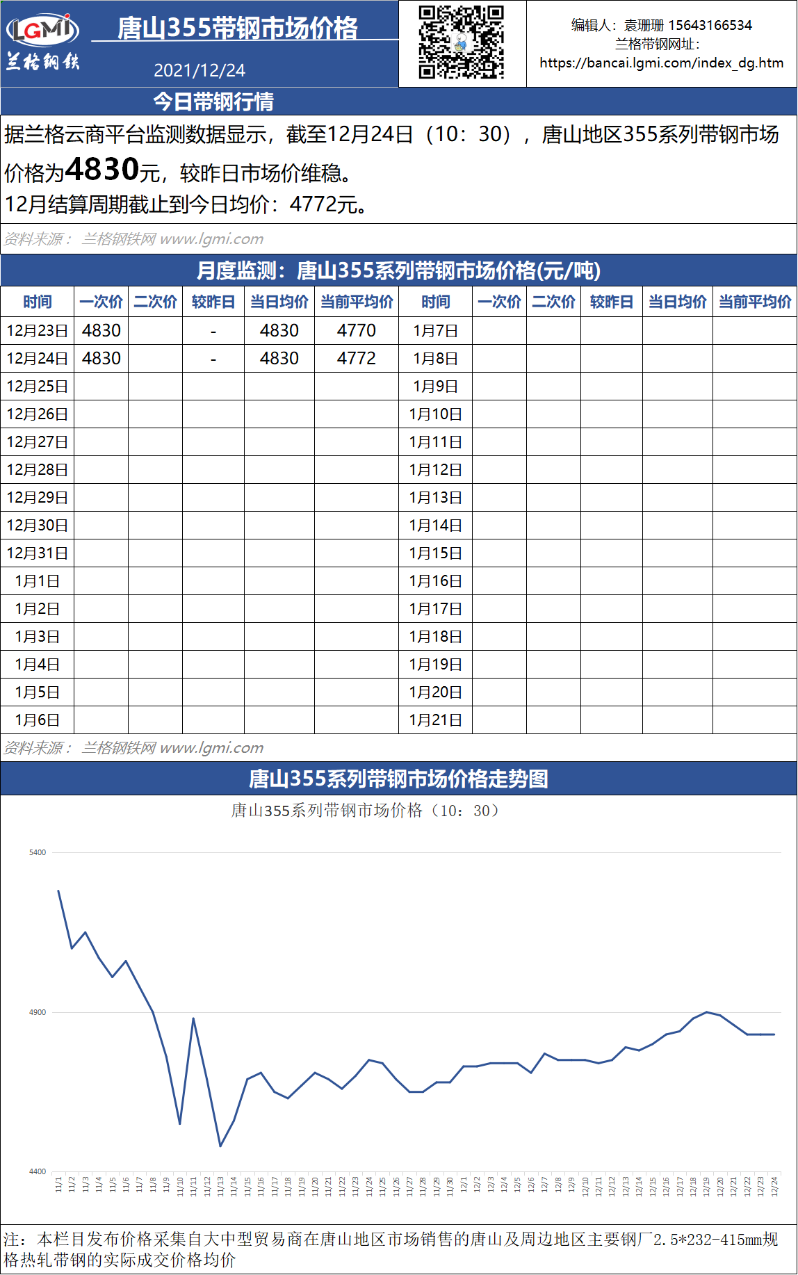 - 12月24日唐山带钢经安145-162系出厂价维稳2021/12/24