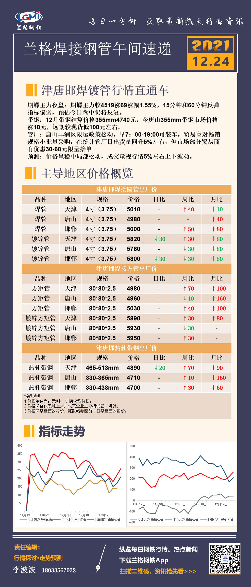 12月24日兰格津唐邯焊接钢管市场午间速递