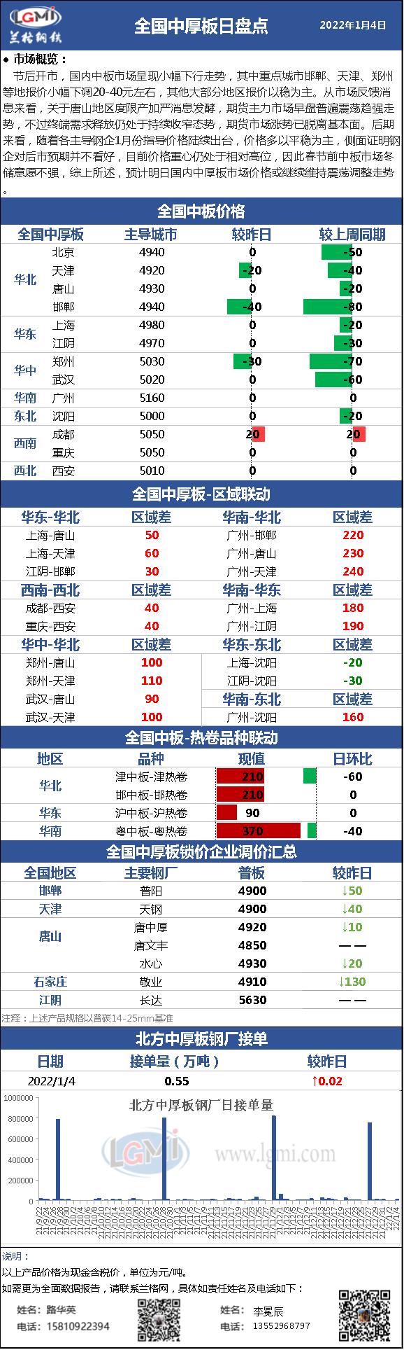 - 1月4日国内中厚板钢厂调价汇总2022/1/4
