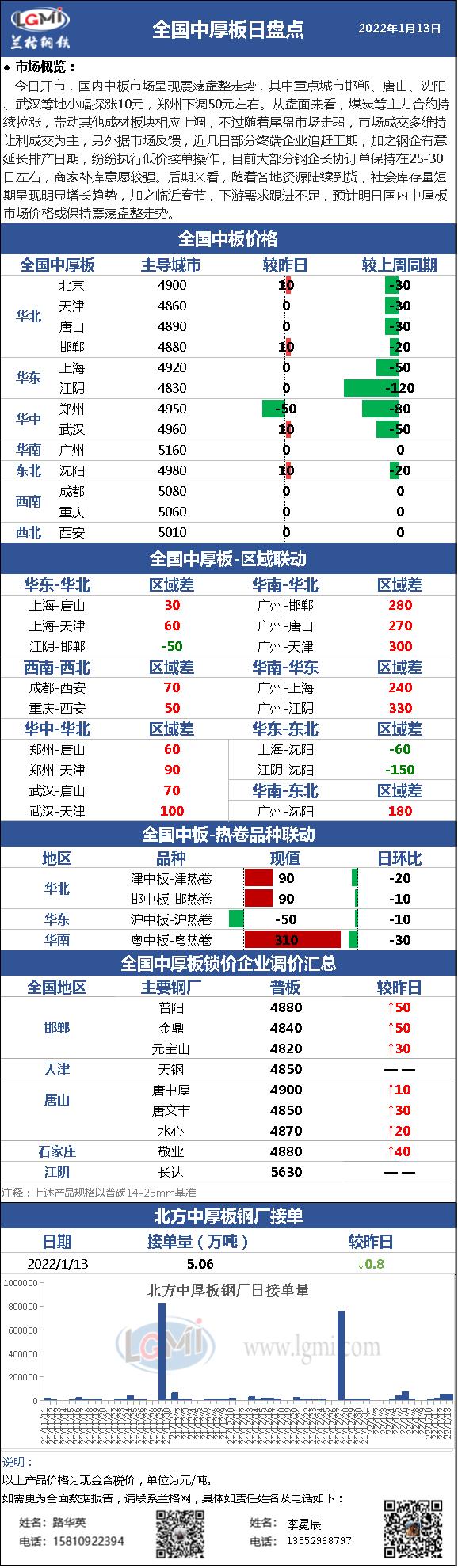 - 1月13日国内中厚板钢厂调价汇总2022/1/13