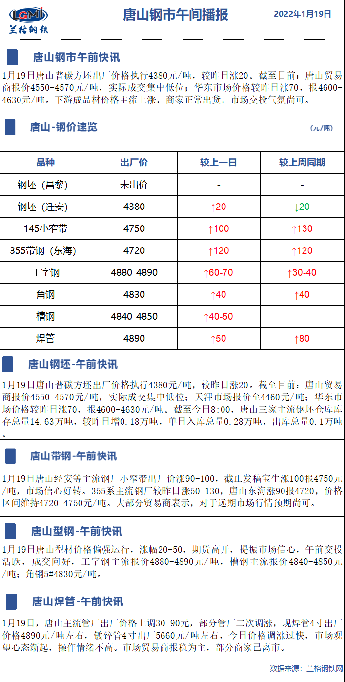 1月19日兰格唐山钢市午间播报