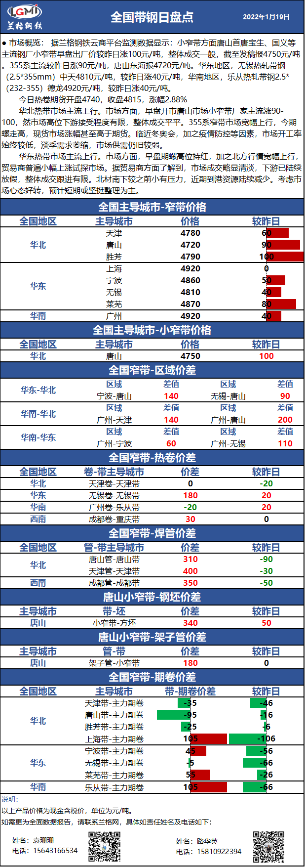 - 兰格带钢日盘点(1.19):带钢价格宽幅上行 商贸后市预期尚可2022/1/19