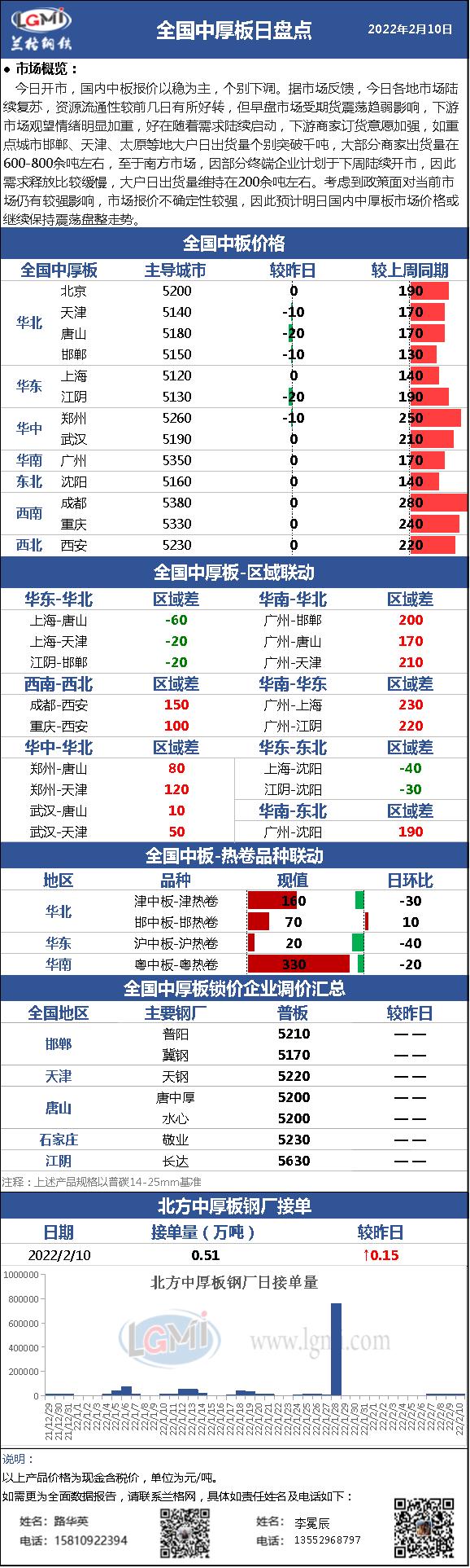 - 兰格中厚板日盘点(2.10):受政策面引导 冲高行情企稳 市场观望情绪加重2022/2/10