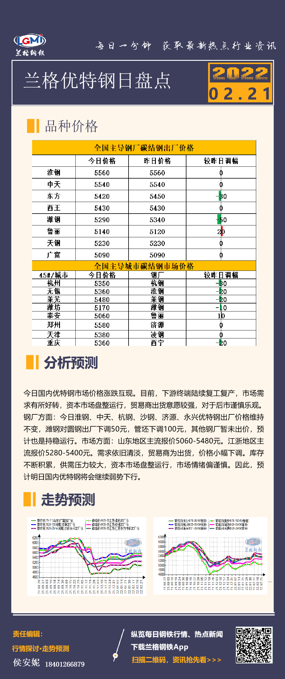 兰格优特钢日盘点(2.21):旬价钢厂持稳运行 市场难坚挺 跌价出货