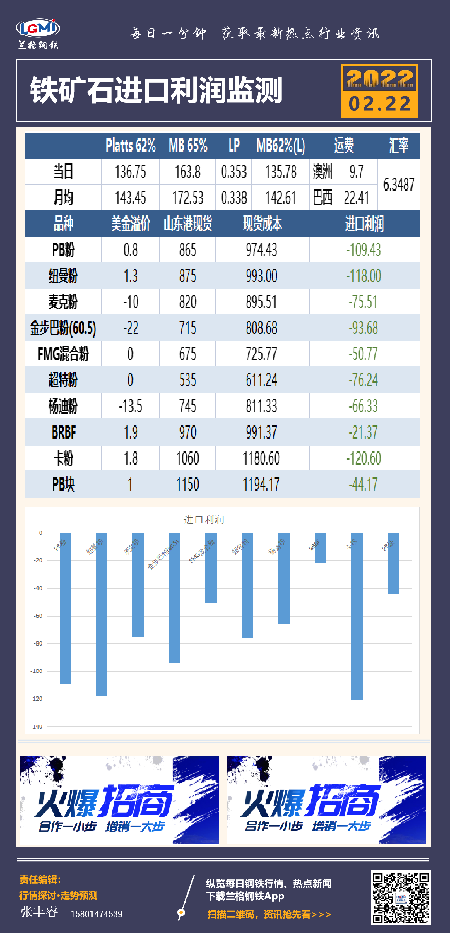 - 铁矿石现货进口利润监测(2022.02.22)2022/2/22