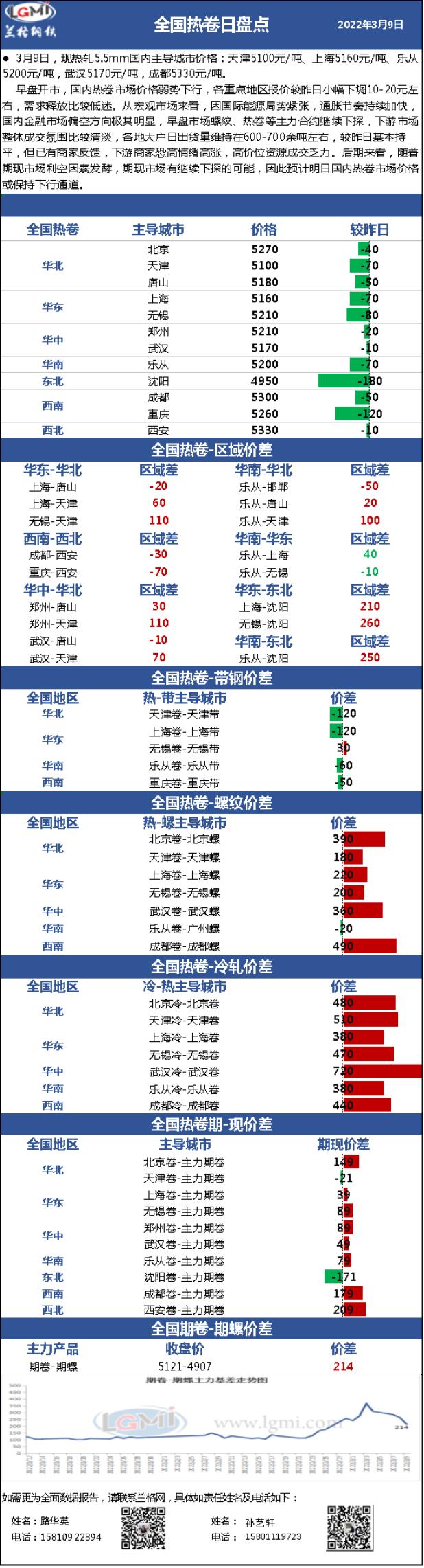 - 兰格热卷日盘点(3.9):利空因素发酵 期现市场处于下行通道2022/3/9