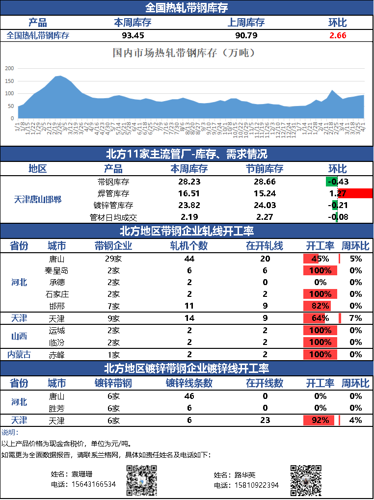 - 兰格调研:唐山地区带钢企业周开工率(4月1日)2022/4/1