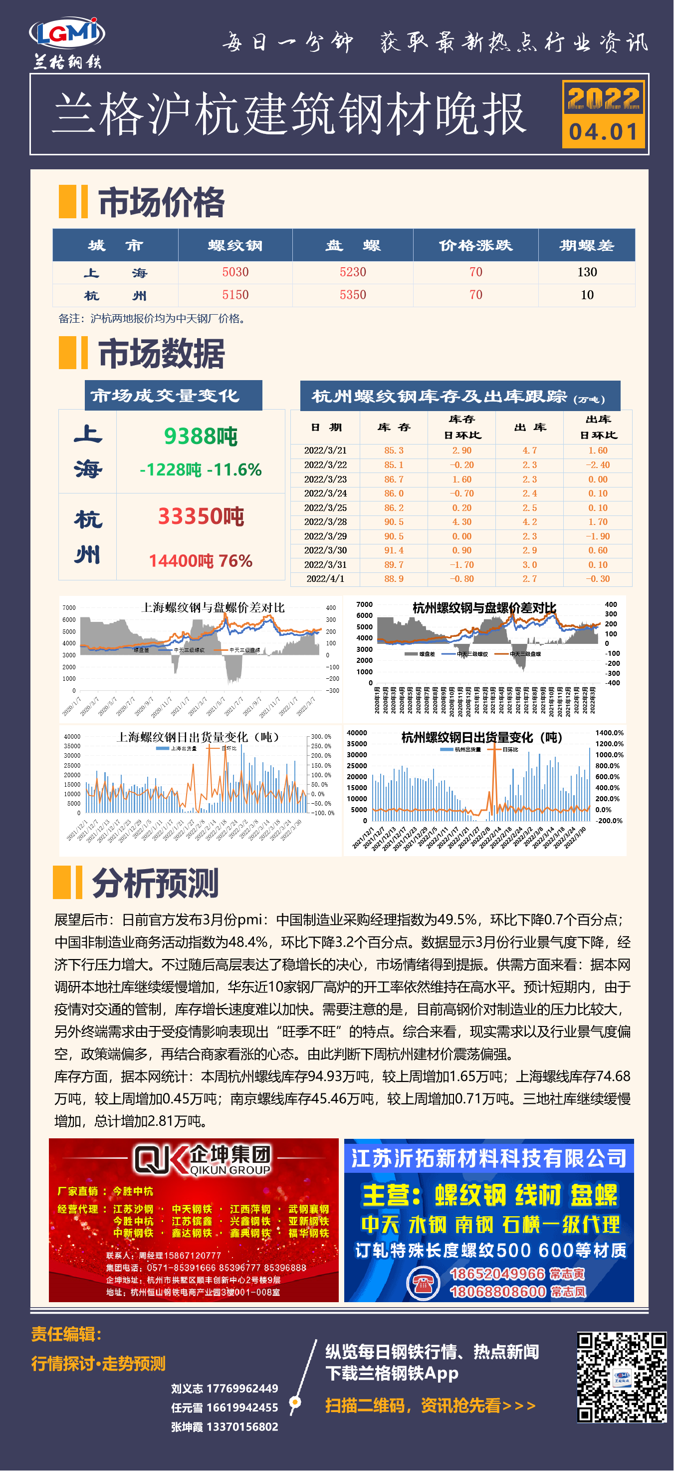 - 兰格钢铁:社库“四连降” 建材板材均加快2022/4/1