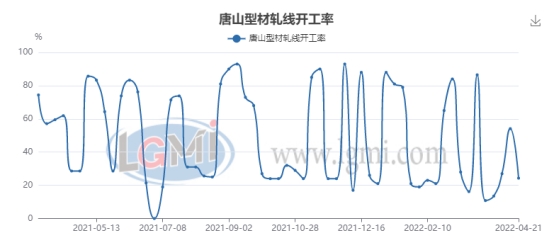 供应方面:据国家统计局此前公布数据,一季度,我国生铁产量2.01亿吨,同比下降11.0%;钢产量2.43 亿吨,同比下降10.5%;钢材产量3.12亿吨,同比下降5.9%。4月份钢铁产能恢复,型材长流程生产企业虽有检修,但整体开工基本维持稳定,据兰格钢铁网调研,统计国内15家长流程生产企业28条轧线,开工维持在80%-90%之间,供应端资源受疫情影响较小,疫情缓解后资源相继流入市场,流通贸易企业库存规格补充,库存压力增长。唐山封控对轧材资源影响明显,3月19日开始唐山轧材企业仅个别封厂生产,大部分停产待工,4月11日唐山解封后,由于人力不足和成本倒挂等原因,轧材企业开工不足,据兰格钢铁网统计唐山25家轧材生产企业37条轧线,4月份开工率维持在30%左右,至月末开工逐步恢复,预计5月初复工复产有望回归正常,统计唐山24家轧材企业4月日均日出货量3.02万吨,较上月增长20.8%,随着疫情缓解交通恢复,供应有所修复,各地资源渐有到货,规格短缺现象有效缓解。